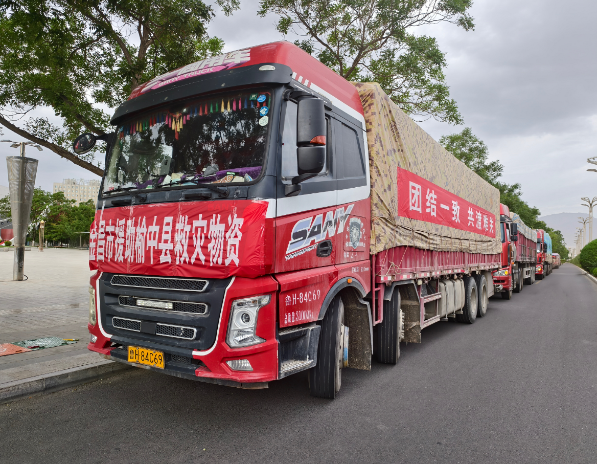 8月10日上午10点,在市人民文化广场,10辆满载金昌人民深切关怀和诚挚慰问的救灾物资车辆集结完毕,依次出发赶赴兰州市榆中县受灾地区。