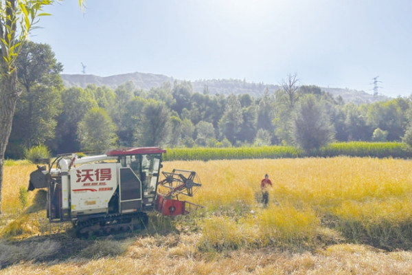 “隆隆隆……”近日,和政县玉才农机农民专业合作社的农田里,油菜收割机的轰鸣声奏响丰收乐章。州农机化服务中心技术员现场指导,社员熟练操作,一片片成熟油菜迅速被收入囊中。“我们合作社今年投入30余台农业机械,在州、县农机化服务中心技术员的指导下,小麦和油菜的耕、种、管、收各环节实现了机械化。一台收割机平均一天能收15亩庄稼,效率大幅提高,节约了工人成本。”该合作社理事长赵玉说。
