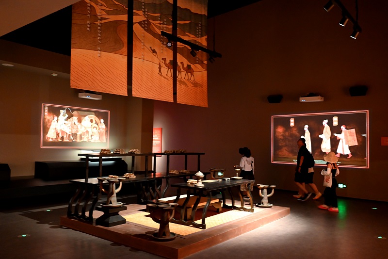 在今年5月1日对外开放的世界文化遗产甘肃敦煌悬泉置遗址景区,游客在悬泉置展示中心参观。