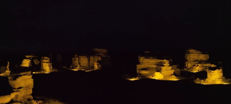 灯光秀堪称视觉盛宴,五彩流光倾泻在形态各异的雅丹地貌上,勾勒出一幕幕奇幻图景,仿佛让人一秒穿越至梦幻仙境,游客们举着相机,争相将这份惊艳定格成永恒。