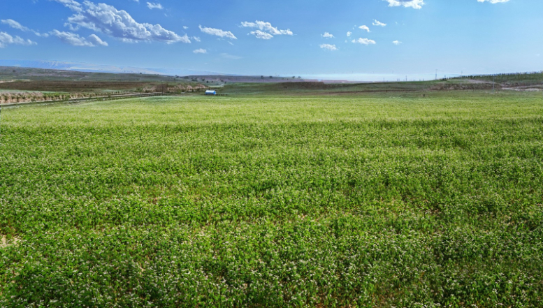 八月中旬的甜水镇秋意初染,景色正浓。晨露在酸枣叶尖闪烁,朝阳为千亩酸枣地嵌满了绿玛瑙般的翠绿小果;5.6万亩荞麦正处盛花期,红白相间的小花织成花毯,引得养蜂人带着蜂箱前来“驻村”,嗡嗡声里藏着蜜的甜香;9300亩玉米翻涌着绿浪,红缨在风中摇曳,泥土的芬芳混着丰收气息扑面而来;养羊场里,波尔山羊的咩咩声此起彼伏……这片曾因“苦水”得名的土地,如今以多元产业酿出生活的“甜”,滋养着一方百姓。