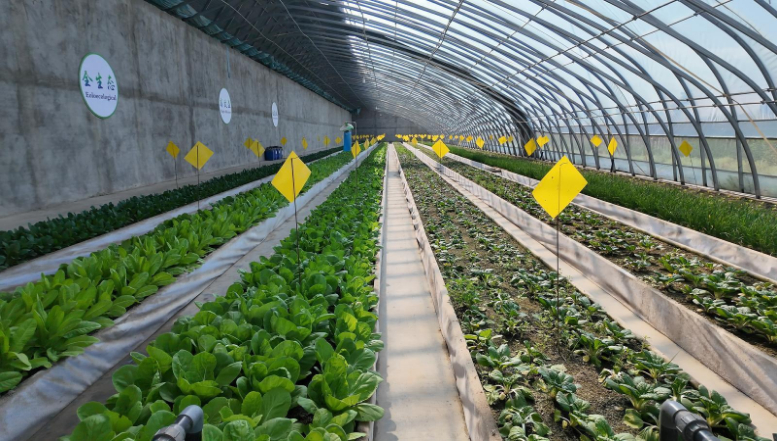 金塔镇营泉沙漠生态农业园区于2022年启动建设,规划打造400座高标准日光温室。园区与国家及省、市农业科研院所深度合作,聚焦温室结构优化、良种选育、智能管控等关键领域开展技术攻关与成果转化,成功推动西红柿基质栽培、西瓜节水沙培、鱼菜共生循环及水肥一体化智控等现代农业科技落地生根,让昔日沙荒变身科技赋能的生态新农园。