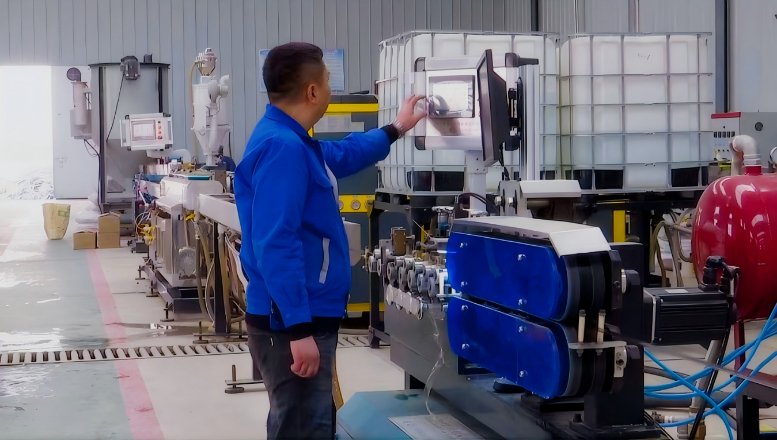 造粒车间里,废弃滴灌带正经历“重生”。投资500万元建成的生产线,将回收的滴灌带加工成高纯度塑料颗粒(PE/PP等),实现资源的循环利用。投产后预计年产值600万元,让“绿色循环”成为集体经济的新增长点。
