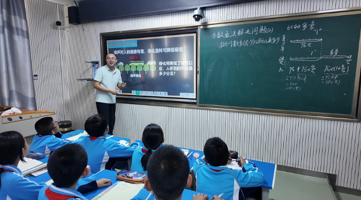 南关小学作为“名师直播课堂”核心校,已派出6名语数英骨干教师参与授课。在分数乘法应用题直播课上,教师苗成林借助动态课件,将抽象知识具象化,6所联盟小学同步学习。