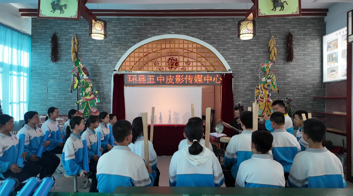 在环县五中,道情皮影戏社团的展示活动格外吸睛:学生们手持皮影道具,演绎《钗头凤》的经典故事,一招一式尽显传统文化魅力。除皮影社团外,学校还开设音乐、美术、书法、科技创新等多个社团,每天下午的社团活动时间,校园俨然成为“艺术与创新的乐园”。