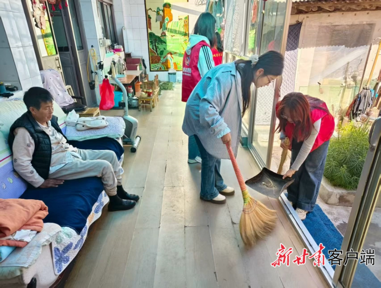 合作市志愿者为老人打扫卫生。(本文图片由合作市委组织部提供)