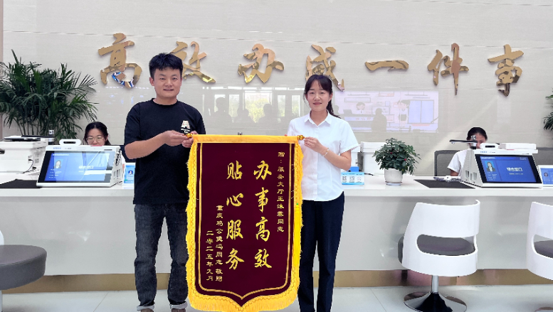 成功办理营业执照后,冯先生将一面印有“办事高效、贴心服务”的锦旗送至金塔县政务服务中心综合窗口,体现了群众对窗口工作人员耐心细致、热情服务的高度认可。