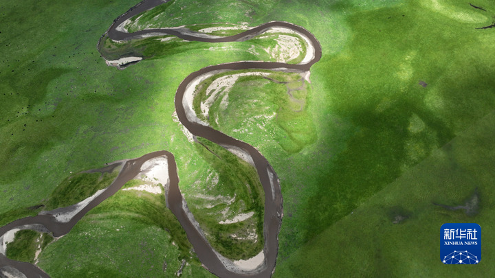 这是甘肃省甘南藏族自治州玛曲县阿万仓湿地景色(2023年7月6日摄,无人机照片)。新华社记者 陈斌 摄