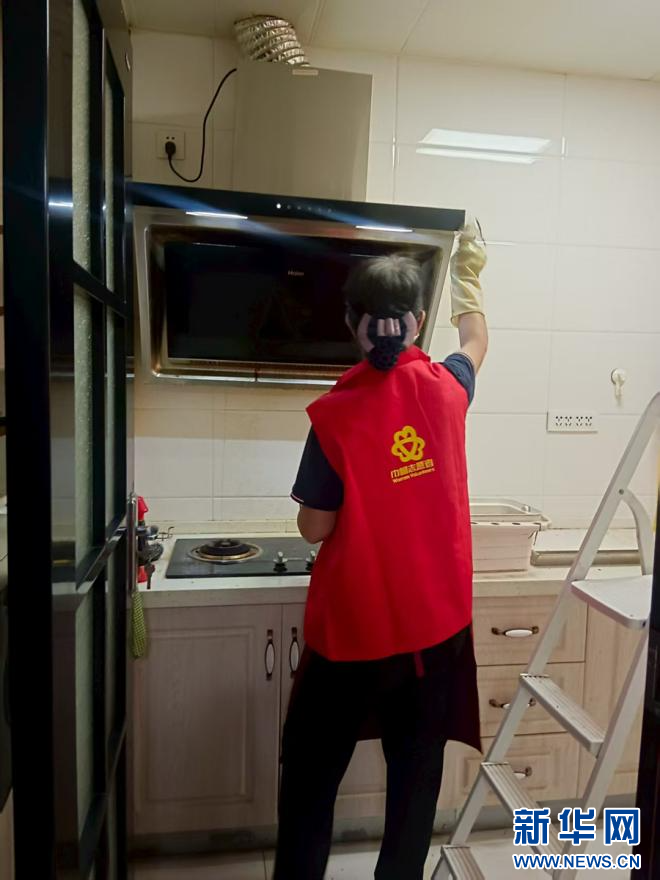 图为兰州市七里河区柳家营社区巾帼家政服务驿站工作人员上门进行厨房保洁服务。(甘肃省妇联供图)