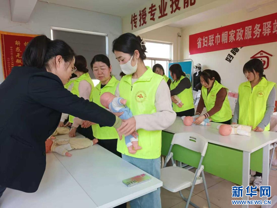 图为兰州市城关区酒泉路巾帼家政服务驿站举办母婴护理技能培训班。(甘肃省妇联供图)