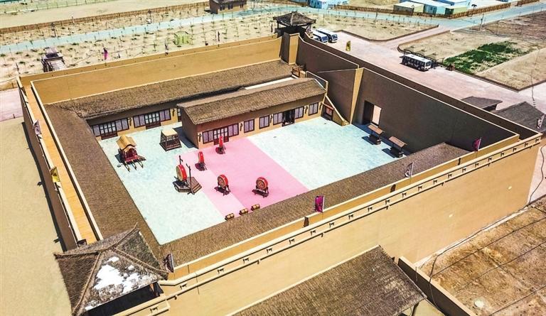 敦煌悬泉置遗址景区等比例复原的悬泉置坞堡。王斌银