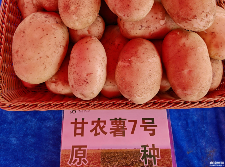 “甘农薯7号”是由甘肃农业大学马铃薯遗传改良与新品种选育团队历经多年科研攻关,精心选育的薯条及全粉加工型马铃薯新品种,不仅具有抗旱、抗病、抗虫等多重抗逆性,还在抗低温糖化和耐贮性方面表现优异。可替代国外“大西洋”“夏波蒂”等薯片薯条加工品种,打破了国内加工型马铃薯长期依赖国外品种的局面。2024年10月,该品种曾创下亩产5812.51公斤的历史纪录,展现出显著的产量优势。今年入选国家农作物优良品种推广目录。