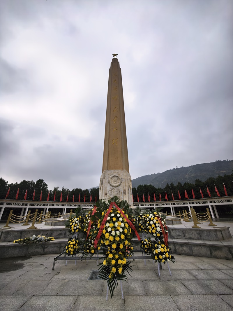 当我和同行伙伴抬着花篮走向纪念碑时,这一路的画面突然在脑海里闪回:南梁革命纪念馆里那些年轻的面庞,腊子口近乎垂直的崖壁,会宁会师塔下孩子们的歌声……每一个地方,都像一页被硝烟浸透的日记。
