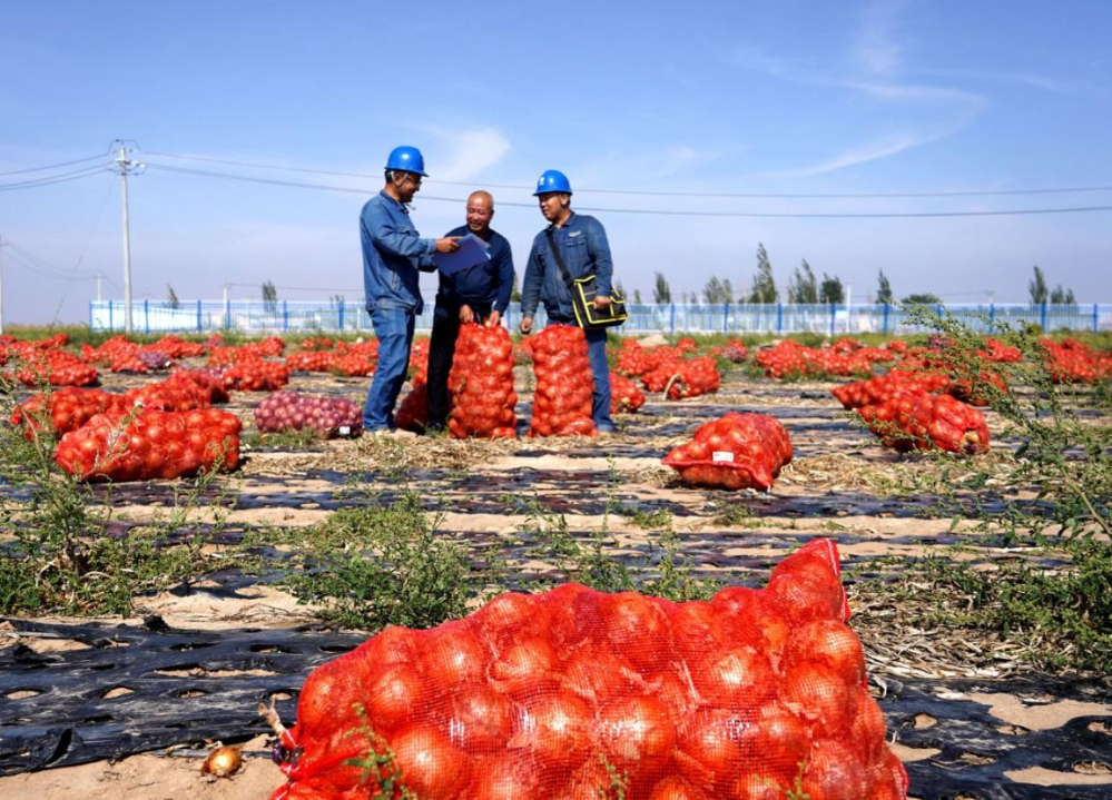 金灿灿的玉米籽粒饱满、红艳艳的西红柿挂满枝头、紫红的洋葱整齐码垛……走进景泰县红水镇高标准农田种植基地,当阳光漫过田野,处处都包裹着丰收的颜色。