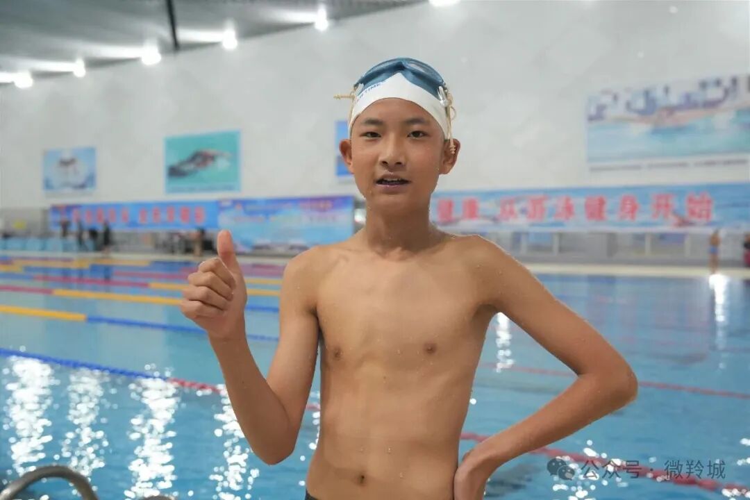 上午10时,随着发令枪响,儿童组50米自由泳比赛率先开赛。身着各色泳衣的小选手们如离弦之箭跃入水中,浪花在赛道上翻滚跳跃。来自合作市的11岁选手杨才华嘉格外引人注目,他的动作标准流畅,每一次双臂划水都力道十足,身体如鱼般在水中穿梭。率先冲过终点线,成功夺冠。“练游泳五年了,今天是第一次参加比赛,心里特别激动!”杨才华嘉抹了把脸上的水珠,笑容灿烂,“能和这么多厉害的小伙伴同场竞技,真的太开心了!”