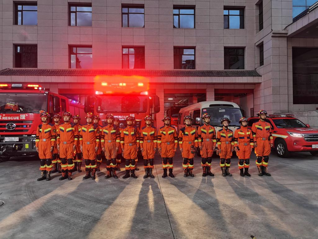 9月27日清晨,定西市消防救援支队集结前往地震受灾区域。新华社发(甘肃省消防救援总队供图)