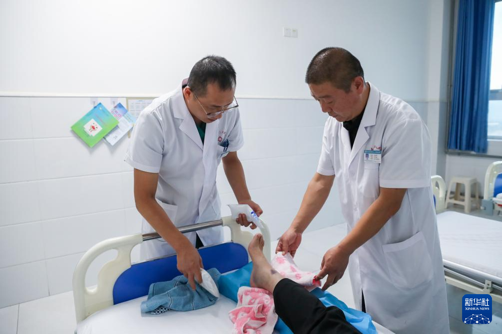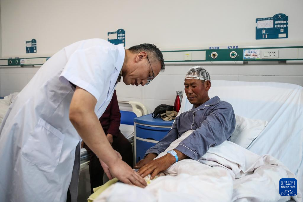 9月27日,在陇西县第二人民医院,医疗救治组专家、兰州大学第二医院骨科主任医师为伤者诊疗。新华社记者 郎兵兵 摄