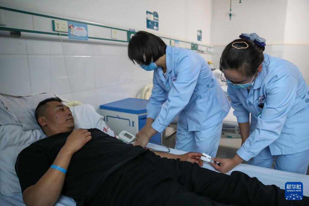 9月27日,在陇西县第二人民医院,护理人员检测伤者身体状况。新华社记者 郎兵兵 摄