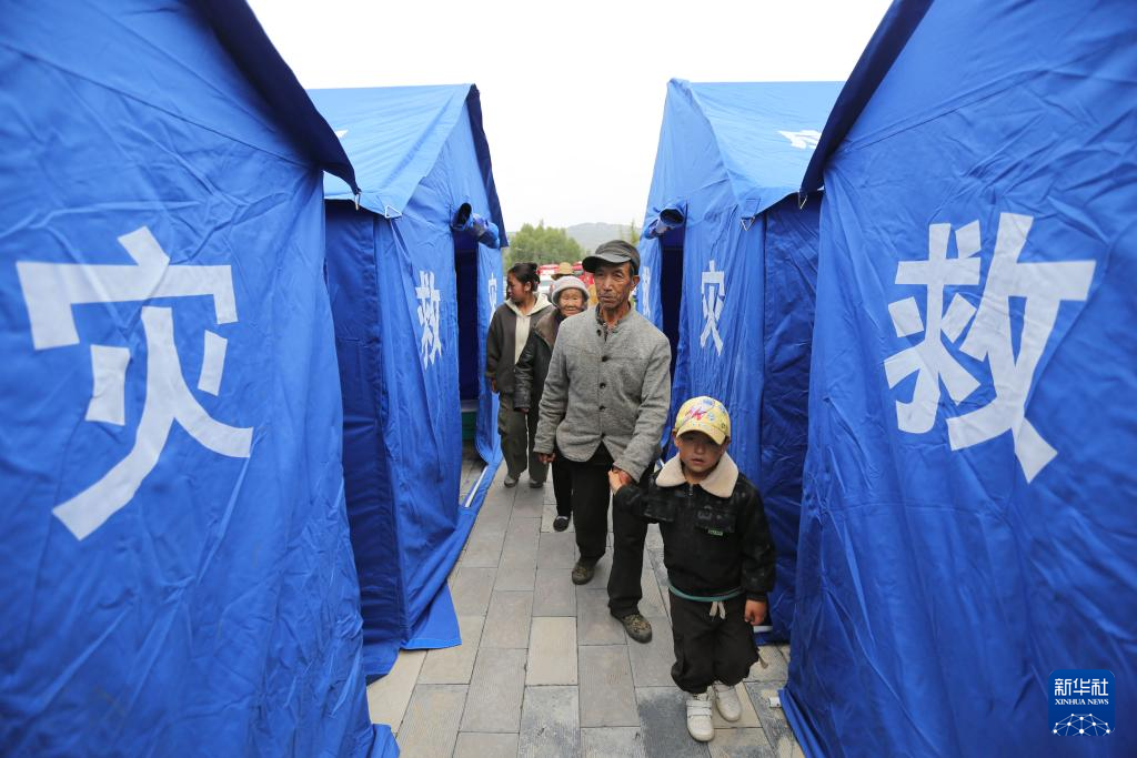 9月27日,村民进入陇西县文峰镇桦林村的受灾安置点。新华社发(王克贤 摄)