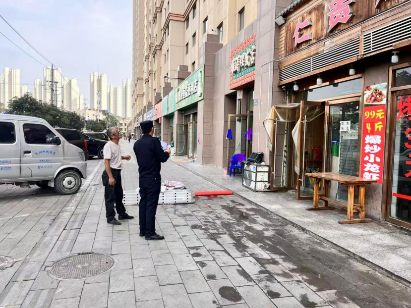 在专项整治行动中,执法人员围绕市容环境与安全领域两大重点推进工作。在市容环境整治上,聚焦辖区主次干道、商业街区、公园广场等关键区域,集中整治占道经营、店外乱堆放、乱贴乱画等违法现象,着力规范商户经营秩序、提升城市环境品质;在安全隐患排查上,重点对户外广告牌匾开展全面检查,对存在安全问题的广告牌匾,及时联系责任人督促整改。此外,明确要求沿街商户严格按照规范悬挂国旗,保证国旗位置合规,无倒置、歪斜、污损等情况,共同维护国旗尊严与城市文明形象。