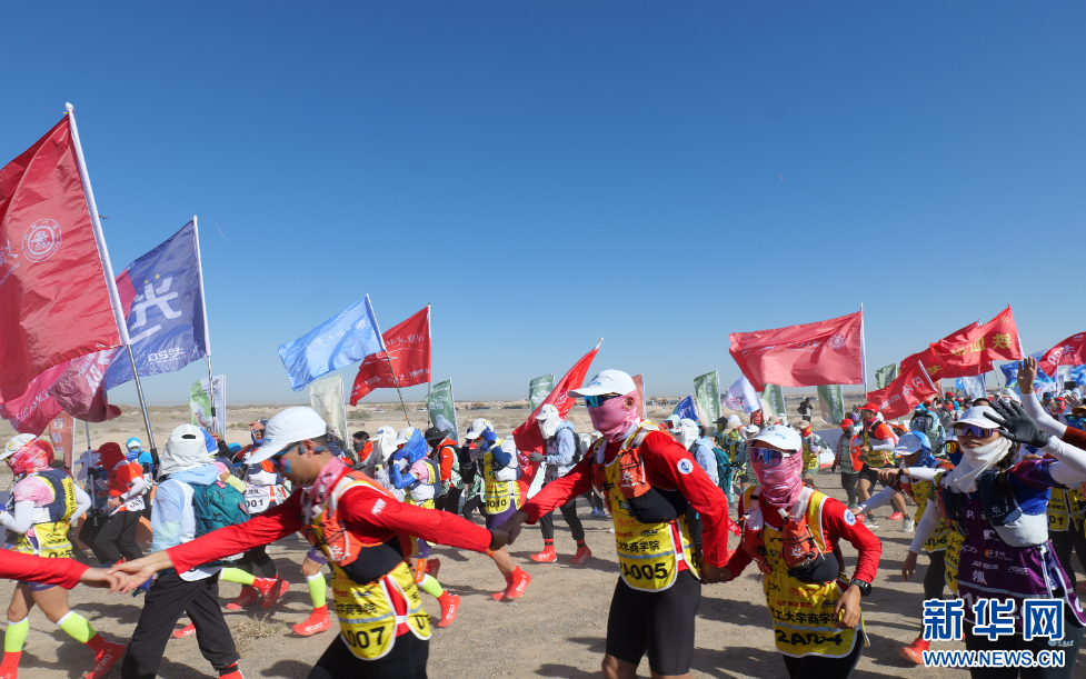 新华网兰州10月1日电(记者贺晋)10月1日,第20届玄奘之路戈壁挑战赛(以下简称“戈20”)在甘肃省酒泉市瓜州县开赛。赛事为期4天,赛程共计121公里,共有来自境内外65所高校的5000名选手参赛。
