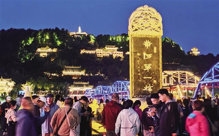 连日来,金城关前的青石板路上人流如织,穿汉服的姑娘举着糖画驻足,银发老人跟着秧歌队扭腰,外地游客举着手机录下太平鼓的铿锵。自10月1日“庆祝中华人民共和国成立76周年兰州文旅促消费群众文艺展演”启幕以来,精彩的文艺节目吸引了众多市民游客汇聚现场,人们载歌载舞共庆佳节,让这承载着丝路记忆的金城关日均客流量直接翻番,成为了国庆中秋长假里的一片欢乐海洋。