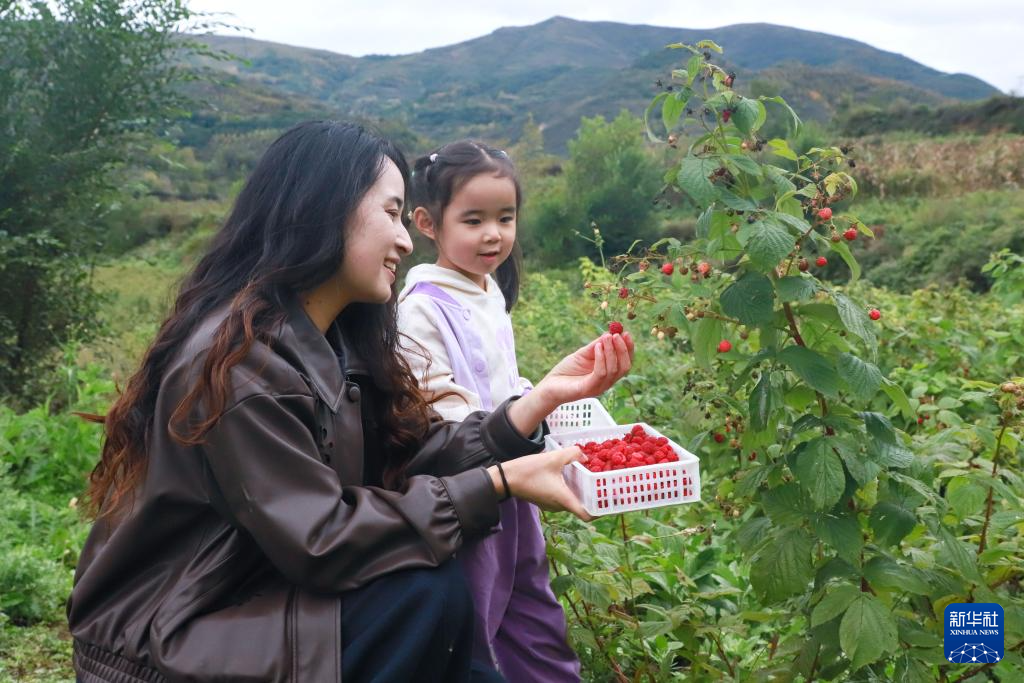 10月6日,种植户在田间采摘红树莓。新华社记者 郎兵兵 摄