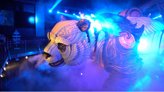 在另一侧,电音乐队和万人音乐会让现场秒变“狂欢派对”。游客们跟随节奏摇摆,用掌声和欢呼回应舞台上的热情。机甲熊猫、沉浸式互动剧《李逵断案》《万象招婿》等趣味活动接连上演,游客们一边看表演、一边参与互动,节日氛围浓烈而温馨。