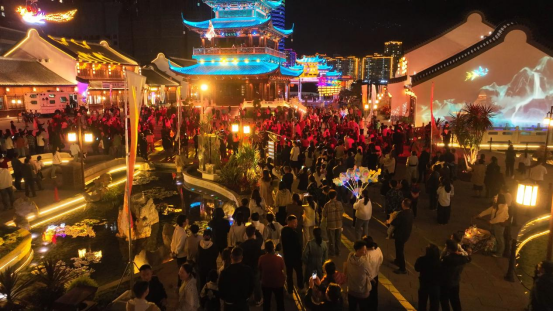 在夜色里,武都与游客一起共享节日喜悦,也用蓬勃升腾的烟火气,点亮了陇南夜晚的美丽画卷。