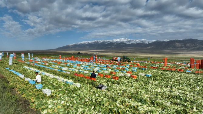 甘肃农垦黑土洼农场采收高原夏菜。李喻轩