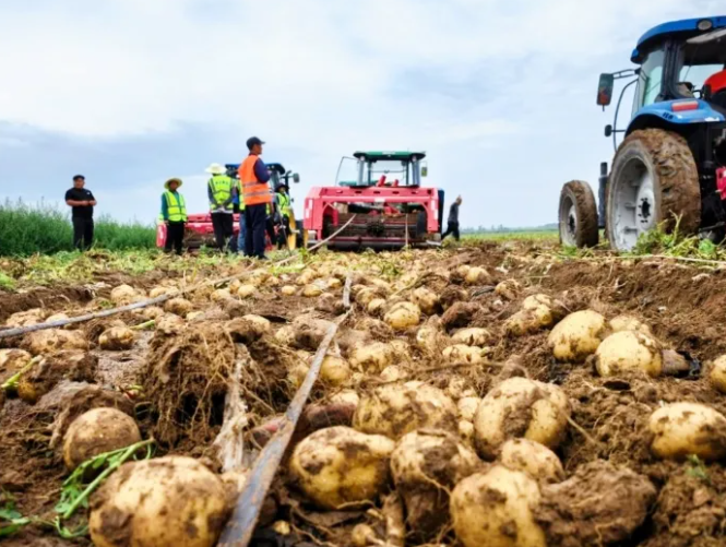 甘肃农垦条山农场马铃薯机械化收获。李娜