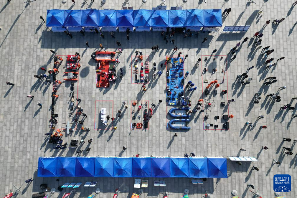 10月13日,由甘肃省防灾减灾救灾委员会办公室、甘肃省应急管理厅主办的第36个国际减灾日省级主会场活动在兰州市东方红广场举行(无人机照片)。新华社记者 张智敏 摄