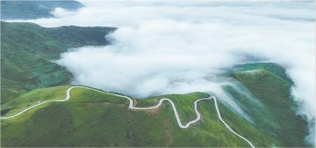 近日,岷县东山云海翻涌,蜿蜒小路穿梭山顶,青翠山峦在云雾里若隐若现,一幅山川秀美的生态画卷徐徐展开。
