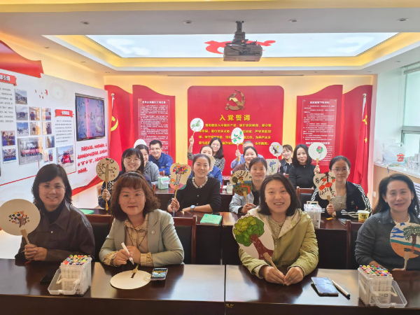 活动最后,职工们在“心灵之树”团扇创作环节拿起画笔,用图案表达内心世界。有人画松树象征坚韧,有人绘榕树代表丰盛,还有人创意地在树上画满花朵,寓意“心花怒放”。