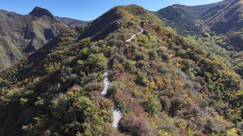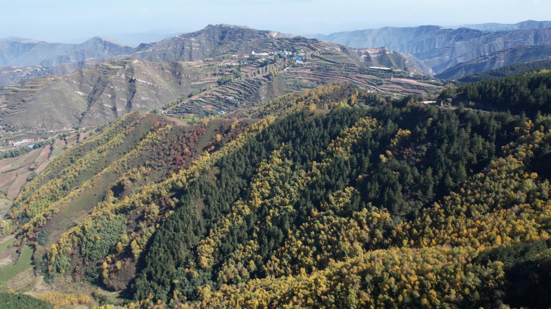 随着秋意渐浓,关山迎来了最佳观赏期。从山脚驱车而上,沿途的风景便已开始“预热”。目光所及,仿佛是大自然打翻了调色盘:白杨树金黄夺目,五角枫红艳似火,各类灌木点缀其间,与常青的松柏形成鲜明对比,构成了一幅层次丰富、气势恢宏的秋日画卷。
