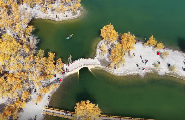 金秋时节,位于甘肃省酒泉市金塔县的金塔沙漠胡杨林景区迎来最佳观赏期。万亩胡杨林披上“黄金甲”,吸引众多游客前来游玩观赏,邂逅大漠秋日风光。(剪辑:刘欣瑜 拍摄:曹红祖、李鹏)