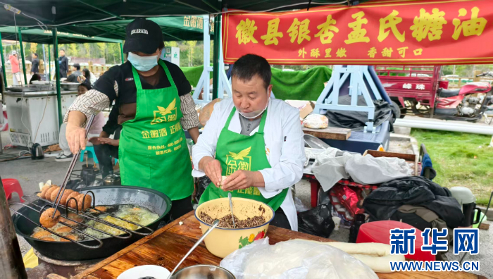 田河村中的商贩正在制作美食。图片由徽县县委宣传部提供