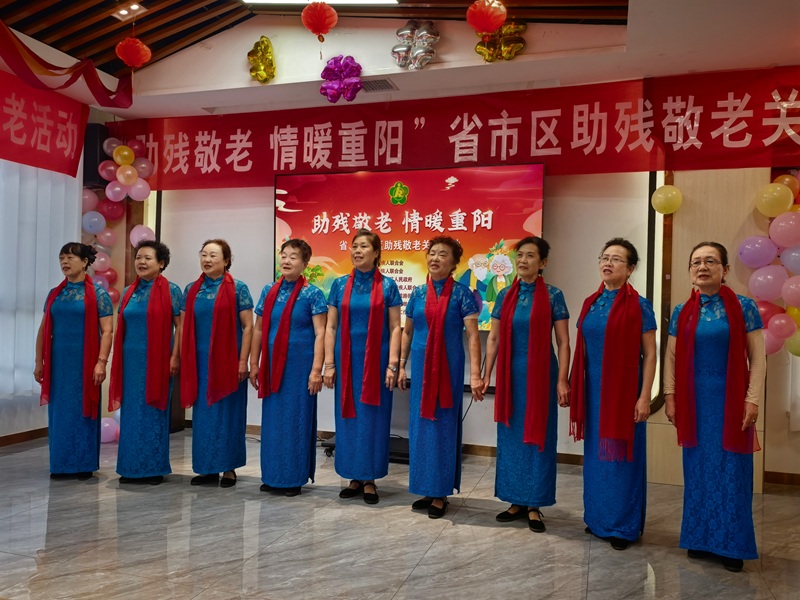 活动现场洋溢着温馨的氛围。志愿者们为每位老年残疾人系上暖心围巾,表达对他们的关爱之情。文艺演出环节精彩纷呈,《五星红旗》《婆婆也是妈》《我是中国人》等节目轮番上演,用歌声传递祝福,为现场老年朋友带来了欢乐与感动。