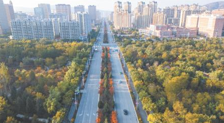 时值深秋,定西市区街巷两旁,林木尽披暖色,黄红交织,构成一幅宜人的静美长卷。