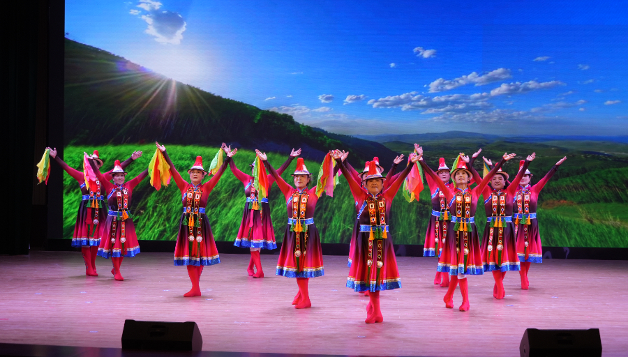 文艺汇演环节同样精彩不断。幼儿园小朋友带来的《中华孝道》以稚嫩童声传承着美德力量;藏族舞蹈《最美的故乡》舞姿悠扬,诉说着对故土的深情眷恋;裕固族舞蹈《裕固欢歌》则以欢快节奏与绚丽服饰,展现出浓郁的民族风情。电吹管合奏《牧歌一曲献给党》如清风拂过草原,情景剧《大城小爱》演绎着平凡生活中的温暖,幽默舞蹈《小两口》引得满堂欢笑,现代舞《忆青春》则唤醒了岁月的记忆。