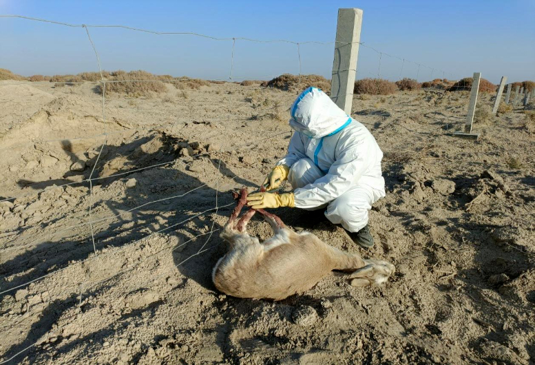 工作人员迅速赶赴现场,经初步确认,该受伤野生动物为国家二级保护动物鹅喉羚,工作人员谨慎实施解救,将其移离防护网。由于受困时间较长,四肢受伤,该鹅喉羚体力严重不支,无法自主进食。工作人员随即将其带回站点救治,待其伤势好转,恢复野外生存能力后放归大自然。