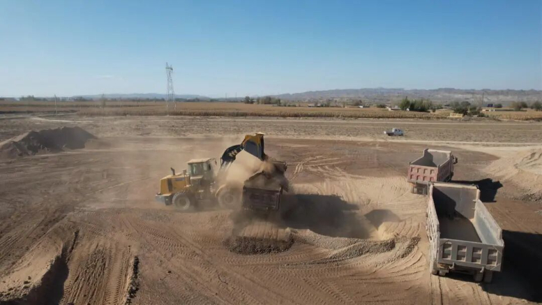 近日,记者走进永昌县东寨镇下四坝村高标准农田建设现场,目睹了如火如荼的建设场景,机械轰鸣声中,装载机、挖掘机、翻斗车穿梭往来,田块整治、引水渠修建等工程正有序推进中。