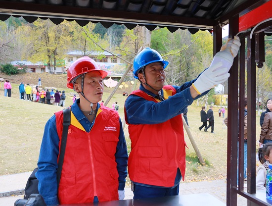 早在专列开行前一周,该公司便启动保电预案,组建以共产党员服务队为核心的保电专班。针对专列串联的月亮峡、田河村千年古银杏群落等核心景点,以及“燧云关·星野仙踪”露营地等配套区域,开展“拉网式”隐患排查,重点检测游客中心、民宿、特色小吃摊的供电线路与设备,对3处老化接口现场整改,更换2台过载断路器,确保供电“零死角”。