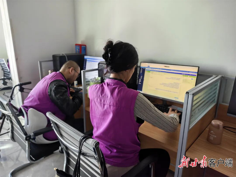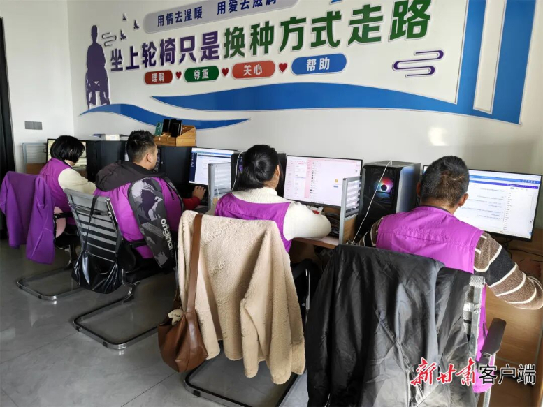 在张掖市“集善乐业”残疾人网络就业基地,大家有序忙碌。