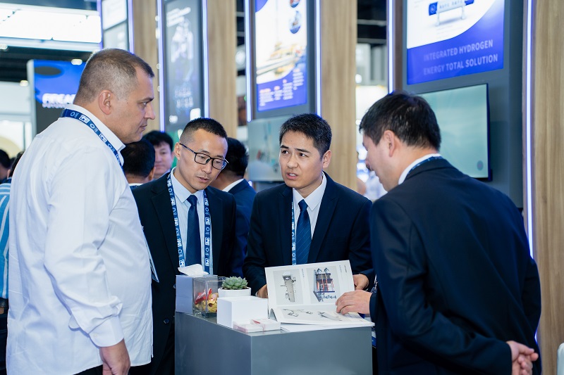 展位前,来自阿联酋、沙特、也门、阿曼、印度等国家和地区的行业代表们,围绕兰石集团新能源领域装备进行着热烈讨论问询。