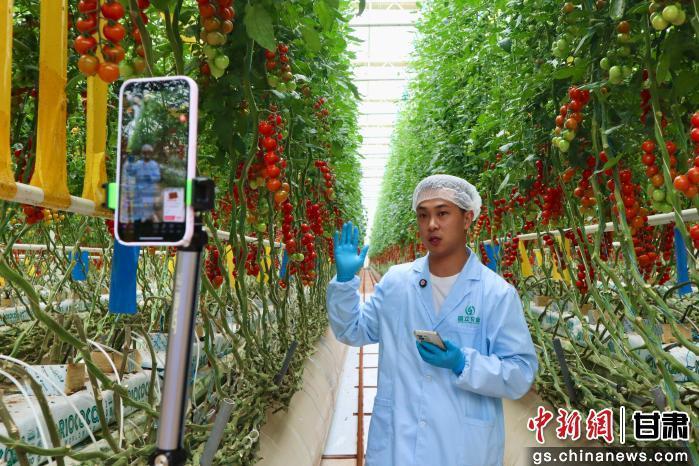 图为立足于“互联网+农业”,崆峒区企业紧抓电商发展机遇,将直播间搬到了生产一线。崆峒区融媒体中心供图