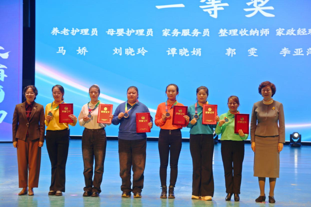 本次大赛组织严密规范,选聘省内外51位行业专家担任裁判员,以专业严谨的评判保障赛事公平公正。参赛选手平均年龄37岁,大专及以上学历占比达73.4%,年轻化、知识化、专业化特征愈发凸显。理论测试环节,选手们沉着应答,尽显扎实的专业功底;实操竞技现场,从老年人科学照护、母婴精细化指导到家居收纳、营养膳食制作,选手们技艺娴熟、从容应变,赛出了风格、赛出了水平。大赛不仅让参赛选手的专业技能与考试应变能力得到全面提升,也让全体裁判员和工作人员得到充分历练,实现了培养高技能巾帼家政人才、培树巾帼家政服务品牌、引领巾帼家政高质量发展的目标。