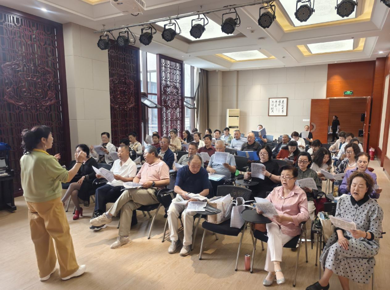 每天清晨,文化馆便热闹起来。退休干部们陆续赶来,有的加入枫叶合唱队或大漠之声合唱团,跟着指挥打磨声部和谐;有的投身花雨舞蹈队排练,伴着旋律舒展身姿;还有的参与乐器演奏,二胡、古筝、笛子等乐器奏响阵阵雅音。63岁的梁萍是枫叶合唱队的团长,他笑着说:“‘十四五’这几年,咱们敦煌的文化设施越来越全,活动越来越丰富。以前退休后总觉得生活少点滋味,加入合唱队后,不仅认识了志同道合的老朋友,还能唱响敦煌的故事,每天都过得充实又开心。”