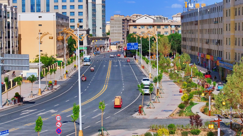 如今的效谷西路,沥青路面平坦宽阔,两侧绿化带繁花摇曳,配套的北辰游园成为市民休憩新地标。而这条路仅是敦煌路网升级的缩影,“十四五”以来,围绕“四纵七横”路网体系,敦煌市新建瑞月路、广至路等道路28条,续建惠煌路、白马路等道路10余条,提升佛光路、阳关西路等人行道3万平方米,城市路网全面升级,通行效率进一步提高。