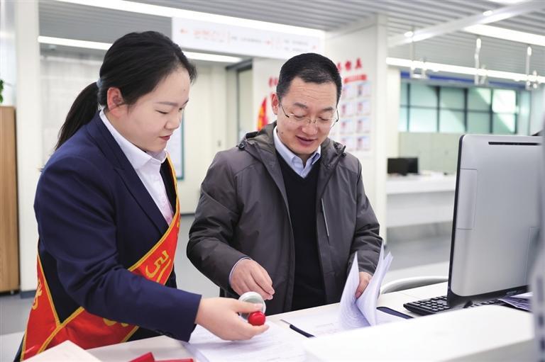酒泉市政府服务中心工作人员为前来办事的群众提供帮办代办服务。王钰涵